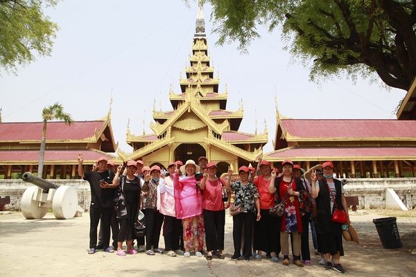 參觀完固都陶佛塔,爸爸媽媽們來到了貢榜王朝敏東王和王后的寢宮——金色宮殿柚木寺,這也是曼德勒***保存至今的皇宮主體建筑。